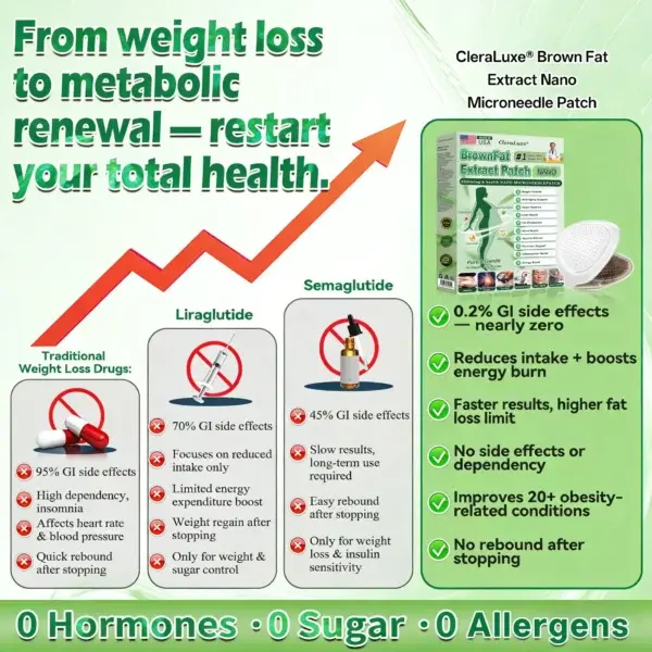 ๐๐ญ ๐๐ฑ๐ญ๐ซ๐๐๐ญ ๐๐๐ง๐จ ๐๐ข๐๐ซ๐จ๐ง๐๐๐๐ฅ๐ ๐๐๐ญ๐๐ก breaks through the limitations of traditional weight-loss methods. Using cutting-edge Brown Fat Activation & Extraction technology, it awakens your bodyโs hidden fat-burning engine, accelerates natural fat utilization through passive metabolism, and provides visible rich brown color-change proof as your own activated brown fat metabolites are extracted right on the patchโwhile also helping prevent skin sagging and drooping after weight loss.